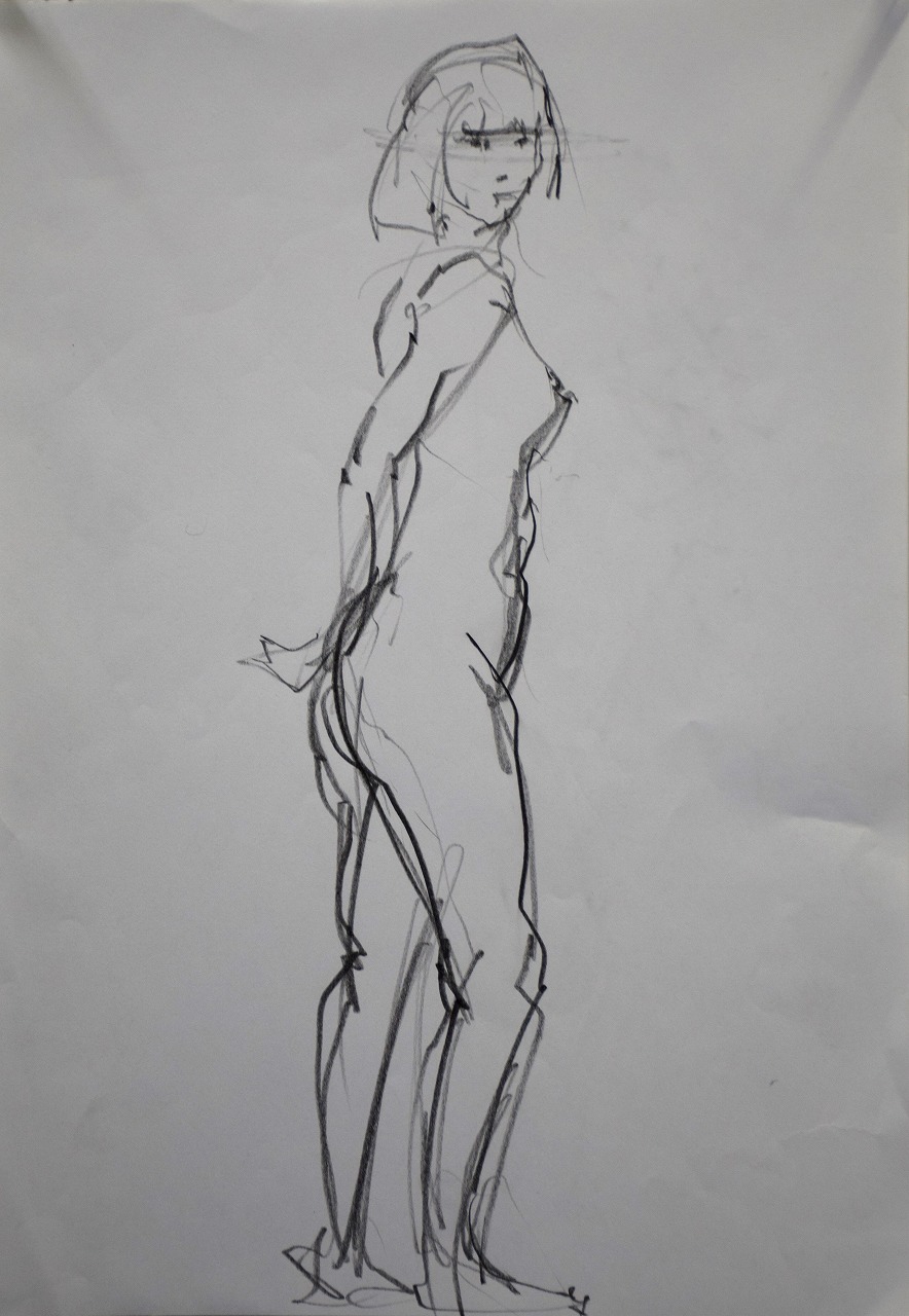 デッサンでの訓練に終始、20分x3回での早や描きで。