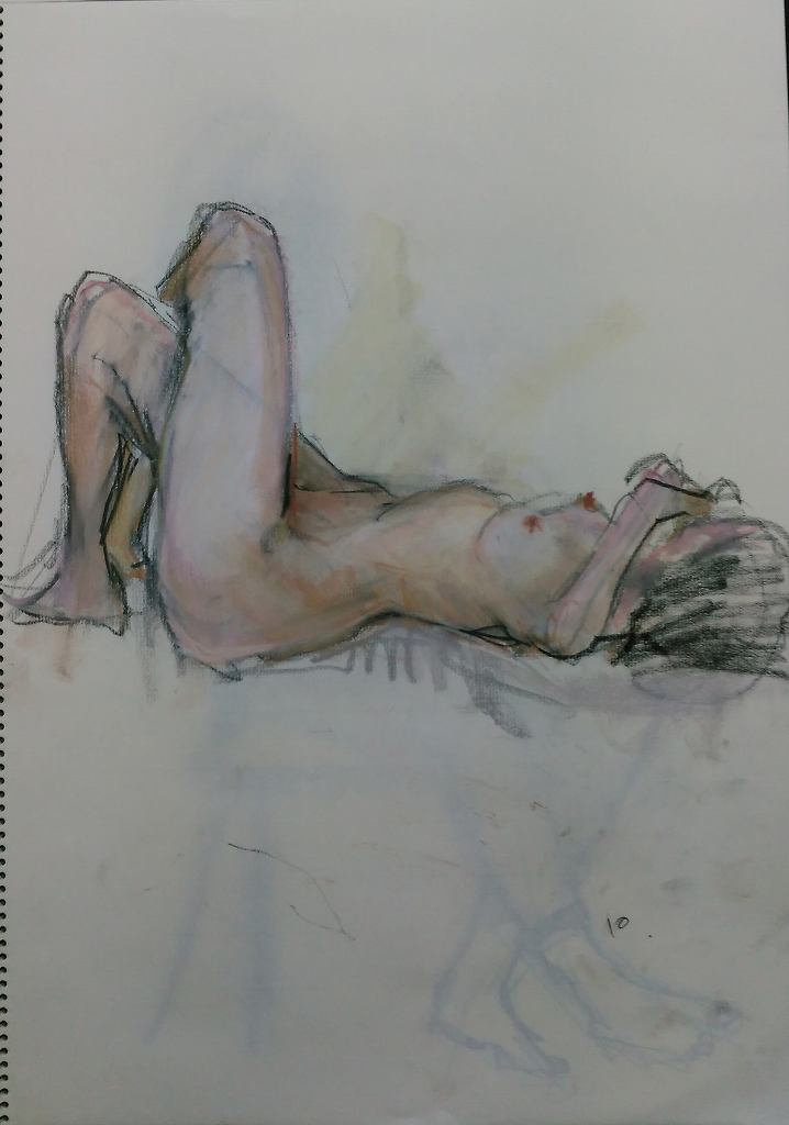 仰向けのポーズ、パステルスケッチ、10min.