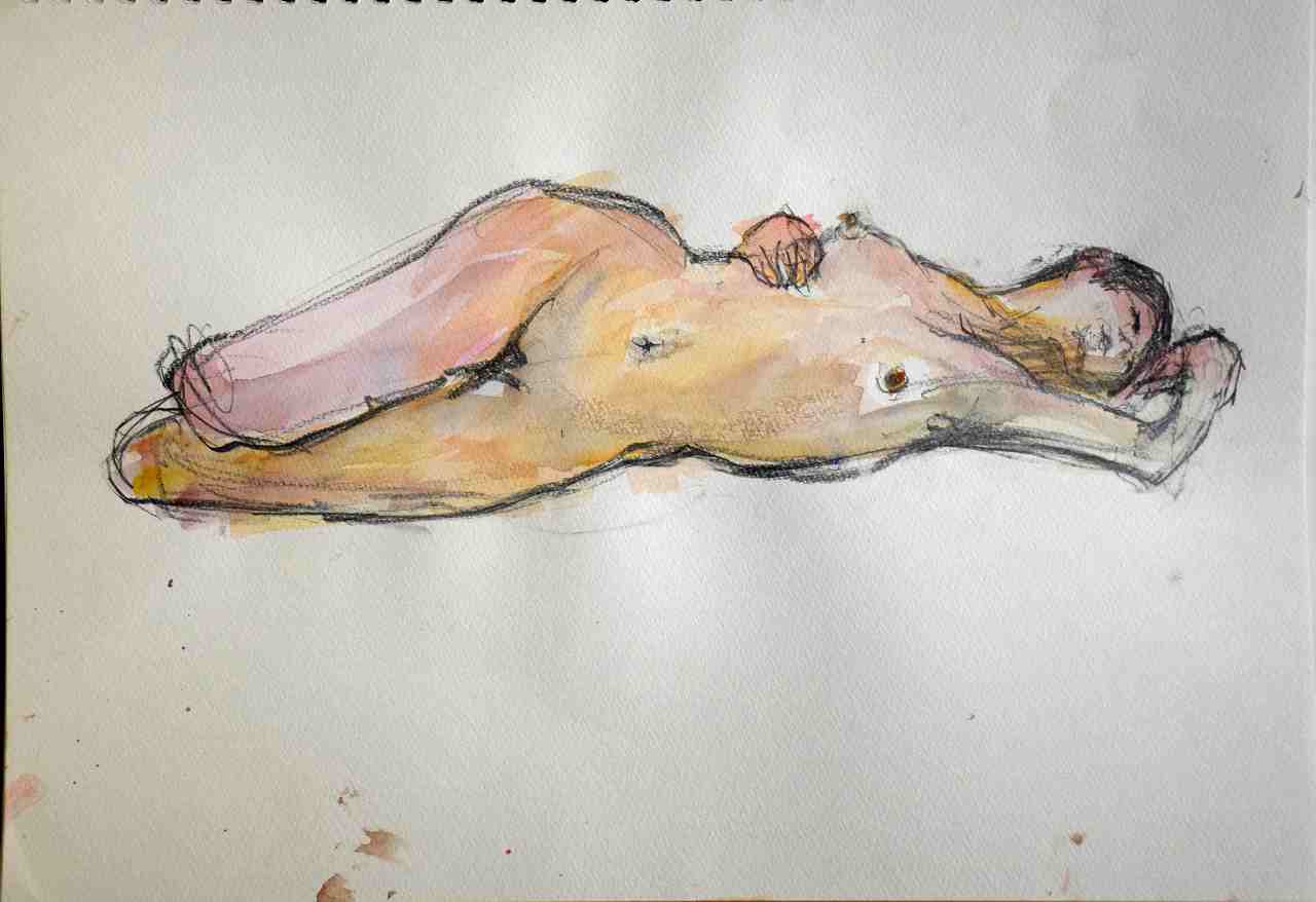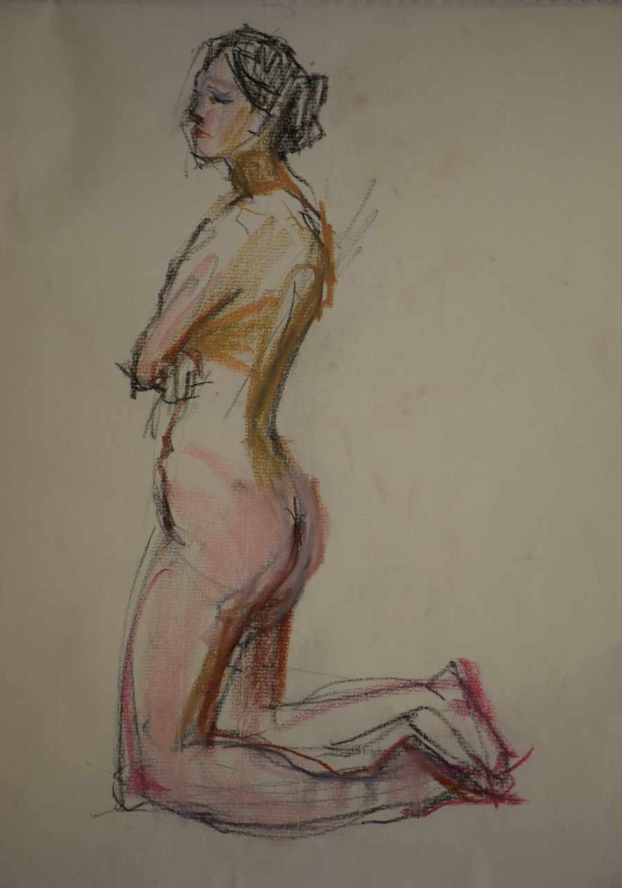 前の、鉛筆によるデッサンの、前段階に1ポーズ強で