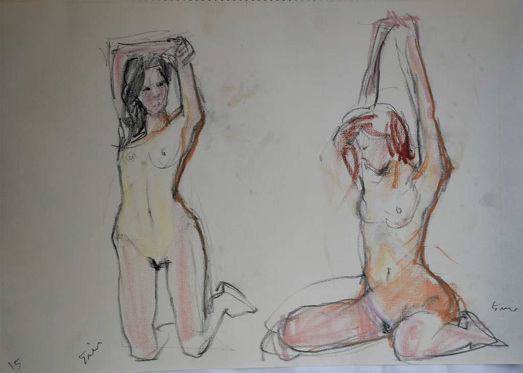 ダンサーモデルによるポーズ、パステルによる5分ポーズの2点