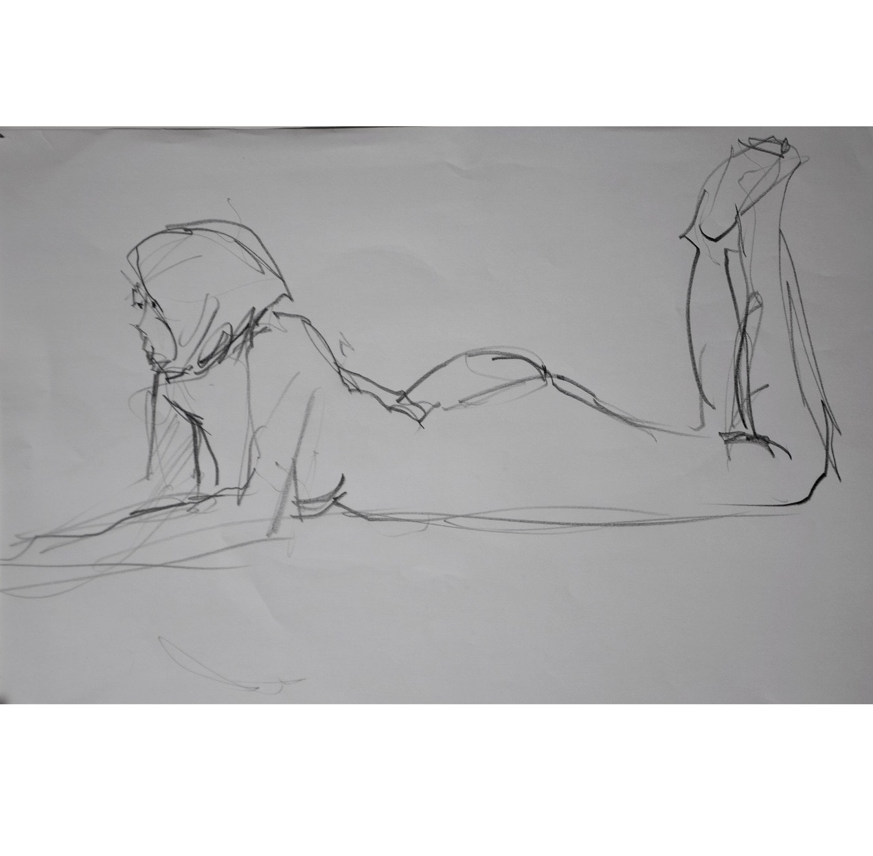 モデルさん持参のランジェリーで、クロッキー風水彩スケッチで、