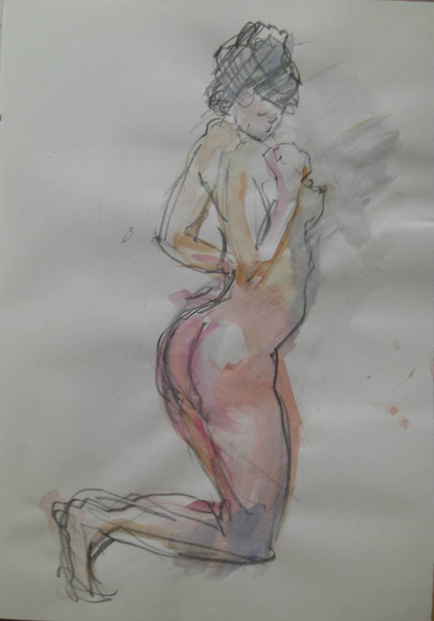 クロッキーポーズからの水彩スケッチ、簡単なポージングから