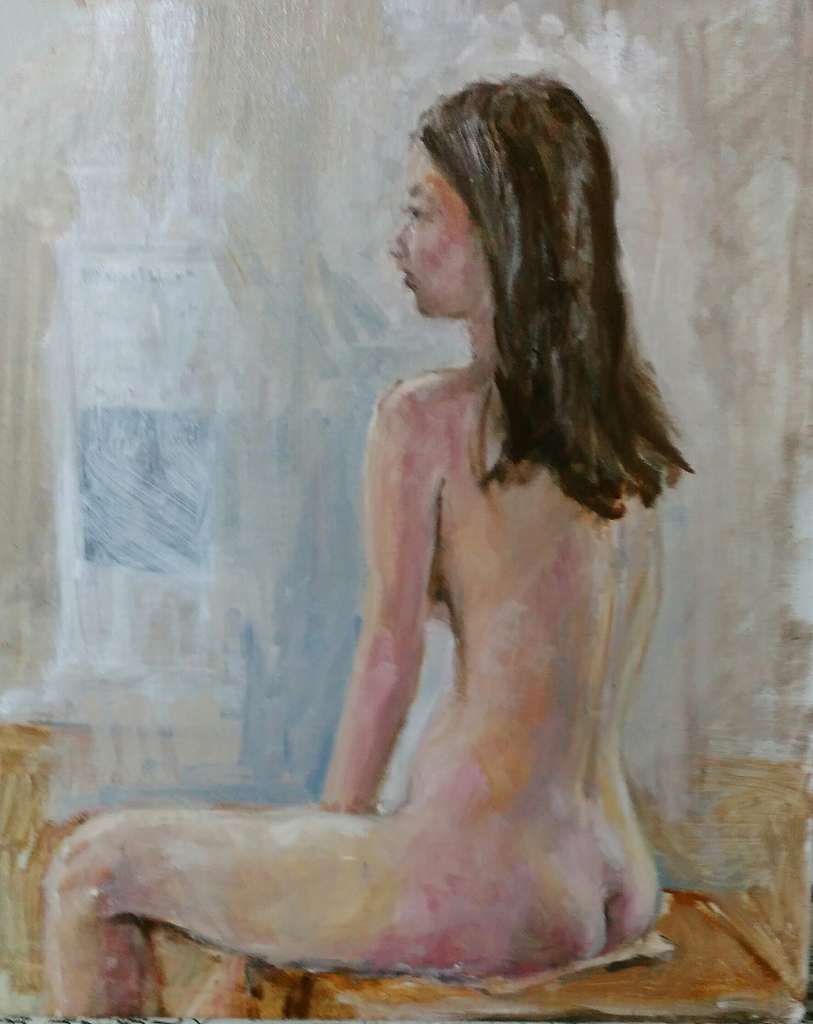 最終ポーズで、急ぎ油彩でスケッチ
