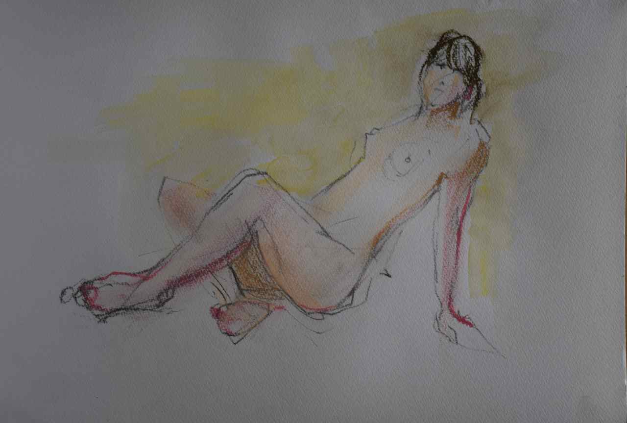 ヌードクロッキーの5分↑ポーズでの、水彩淡彩のスケッチの連作
