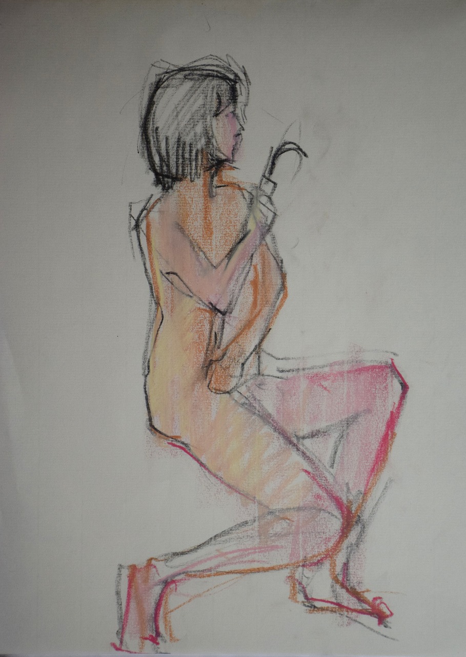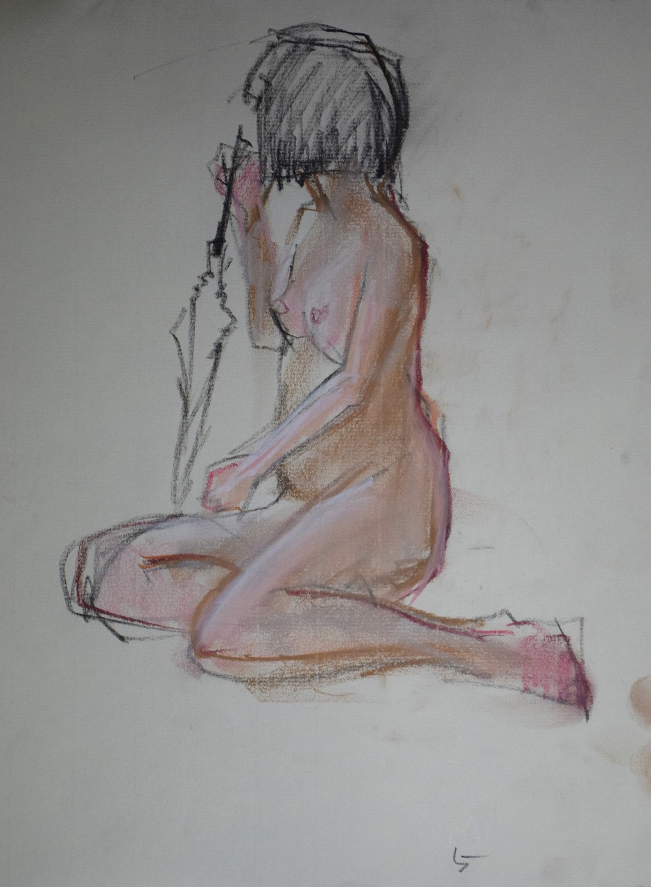 このデッサンが主で、1ポーズ残しての前頁のパステル画ということで、