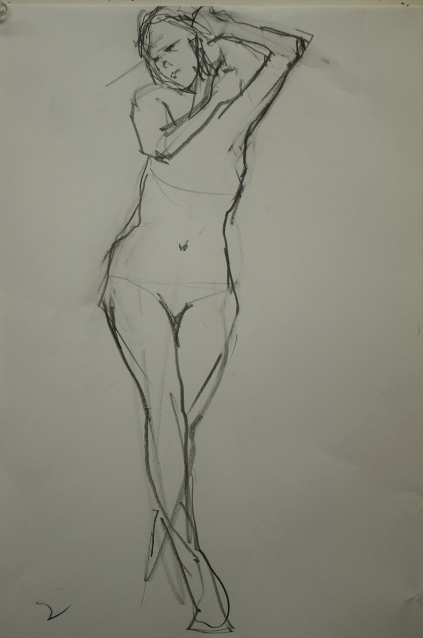 クロッキーポーズでの着彩スケッチ、下描きなしでの直接描画。