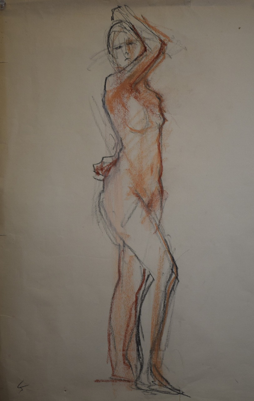 クロッキーポーズでの、パステルスケッチ、5分ポーズ
